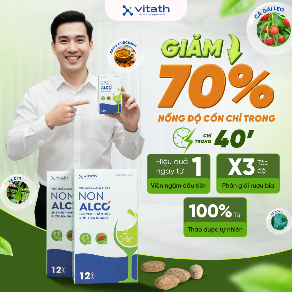 Trong số các sản phẩm đang được quan tâm hiện nay, Nonalcovitath là cái tên được nhiều người chú ý nhờ định vị là viên uống giải rượu hỗ trợ giảm say, hỗ trợ chuyển hóa cồn và hỗ trợ bảo vệ gan. Với những người thường xuyên tiếp khách, đi tiệc hoặc cần giữ sự tỉnh táo sau khi uống rượu bia, đây là giải pháp tiện lợi hơn nhiều so với các cách giải rượu thủ công.